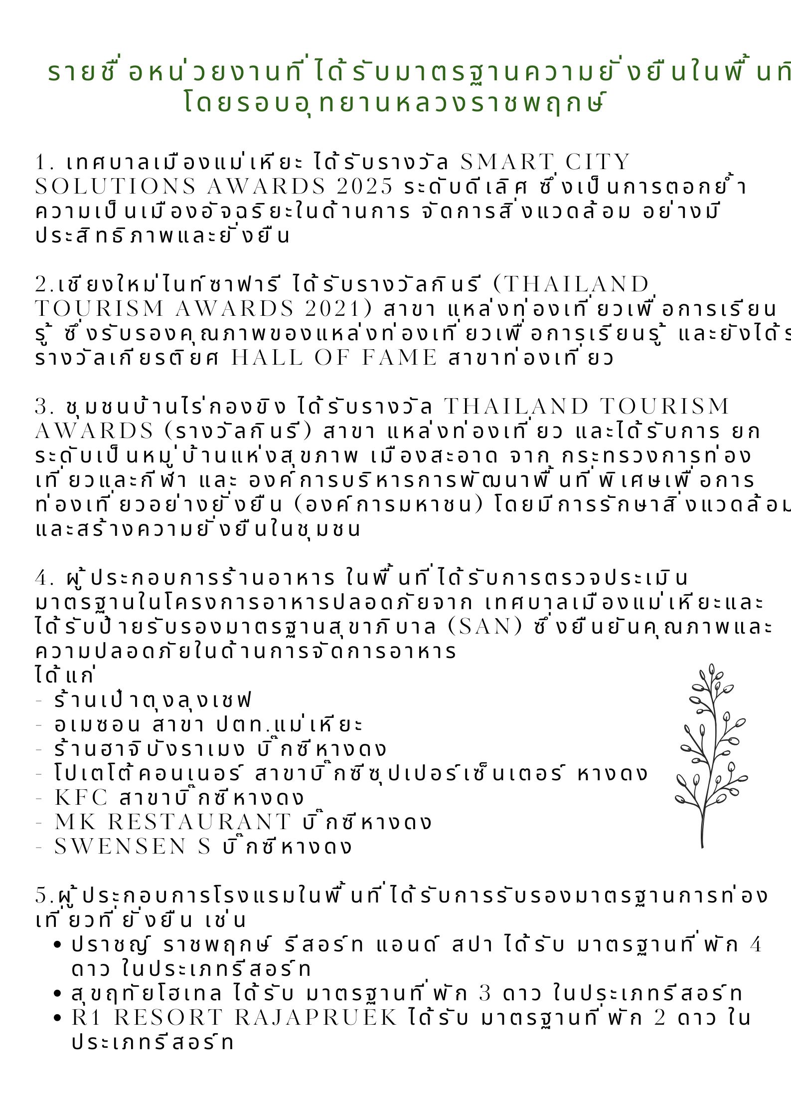 รายชื่อหน่วยงานความร่วมมือที่ได้รับมาตรฐานความยั่งยืนในพื้นที่โดยรอบอุทยานหลวงราชพฤกษ์