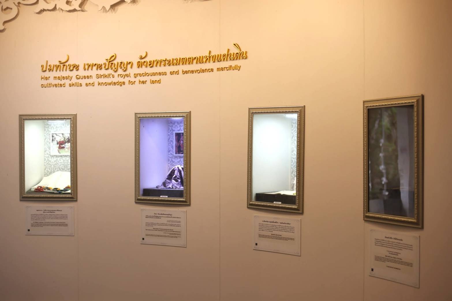 ภายในนิทรรศการ “ธ คือปราชญ์แห่งแผ่นดิน” ณ อุทยานหลวงราชพฤกษ์ จังหวัดเชียงใหม่ ได้จัดแสดงเรื่องราวแห่งพระราชกรณียกิจด้าน การอนุรักษ์และส่งเสริมศิลปหัตถกรรมไทย สะท้อนพระราชปณิธานที่มุ่งให้ประชาชนมีอาชีพ พึ่งพาตนเองได้อย่างยั่งยืน