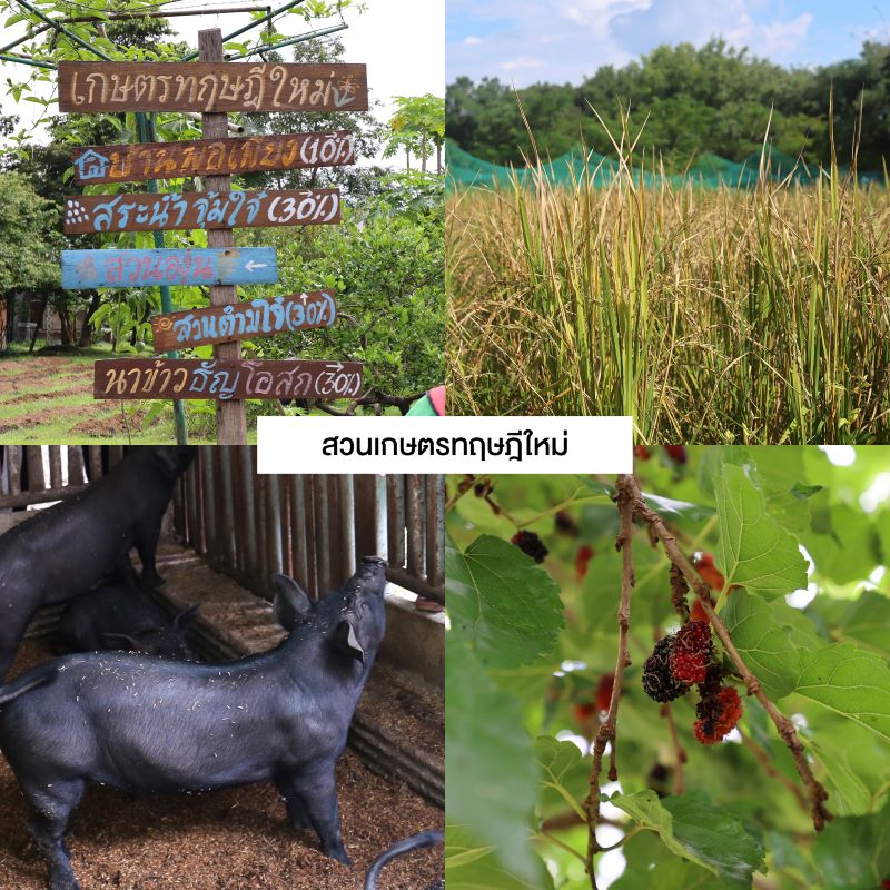 สวนเกษตรทฤษฎีใหม่ : เรียนรู้การทำการเกษตรทฤษฎีใหม่ ตามหลักปรัชญาของเศรษฐกิจพอเพียง สนุกกับพืชพรรณที่มีความสำคัญในการดำรงชีวิต อาทิ ข้าว พืชผัก สมุนไพร ไม้ผล และรู้จักสัตว์เลี้ยงที่เป็นประโยชน์ ชมได้ทั้งวัน