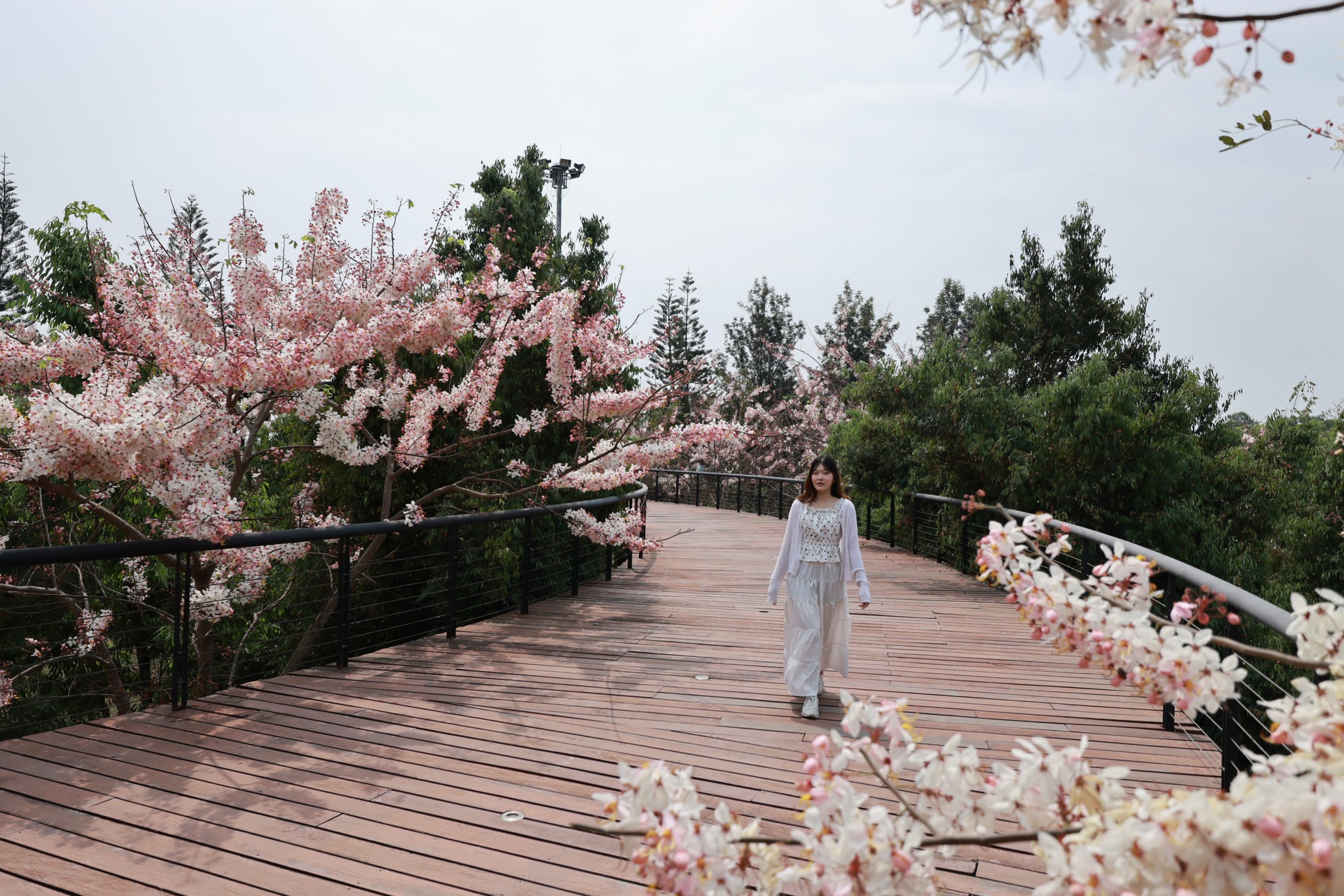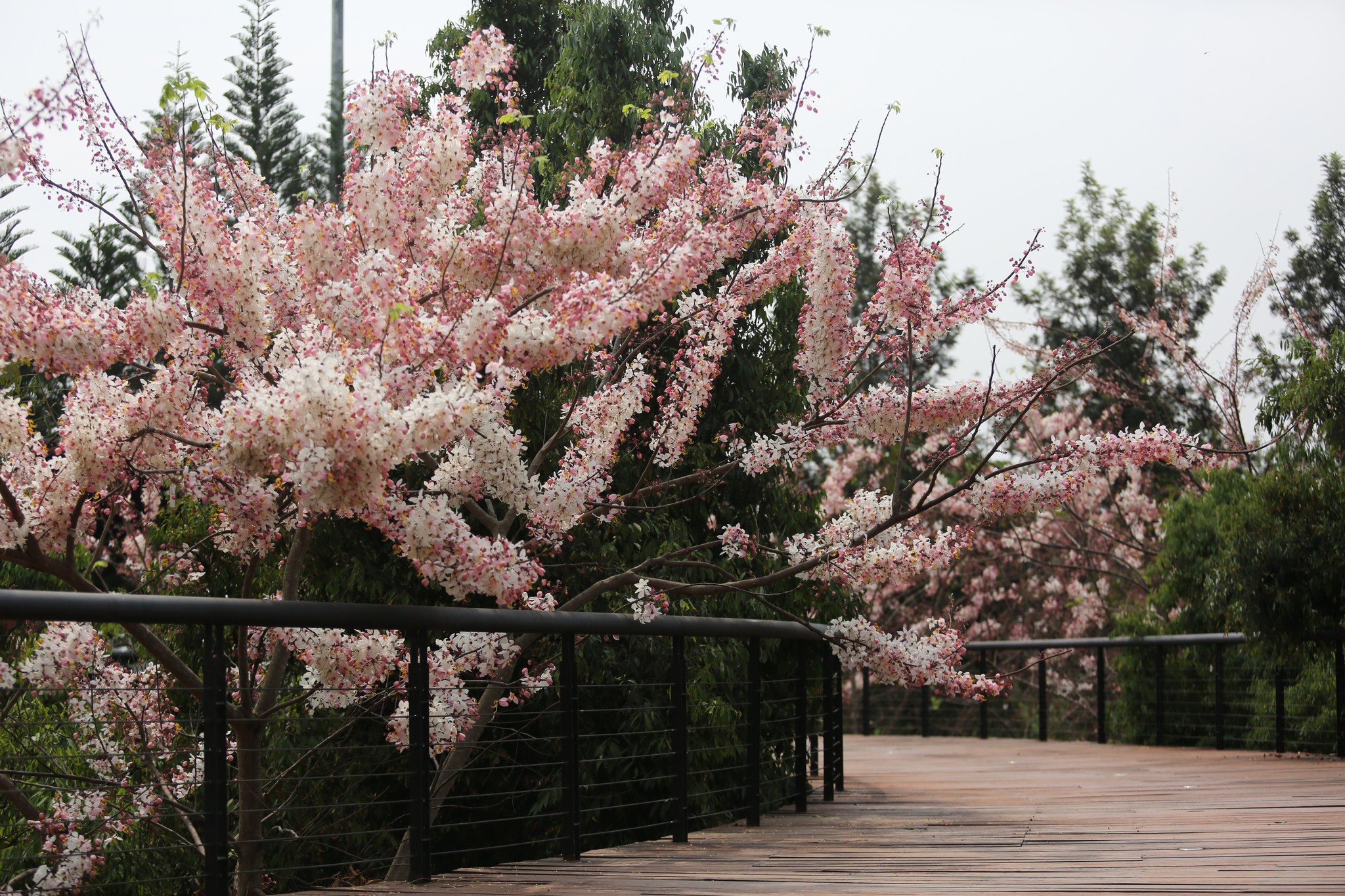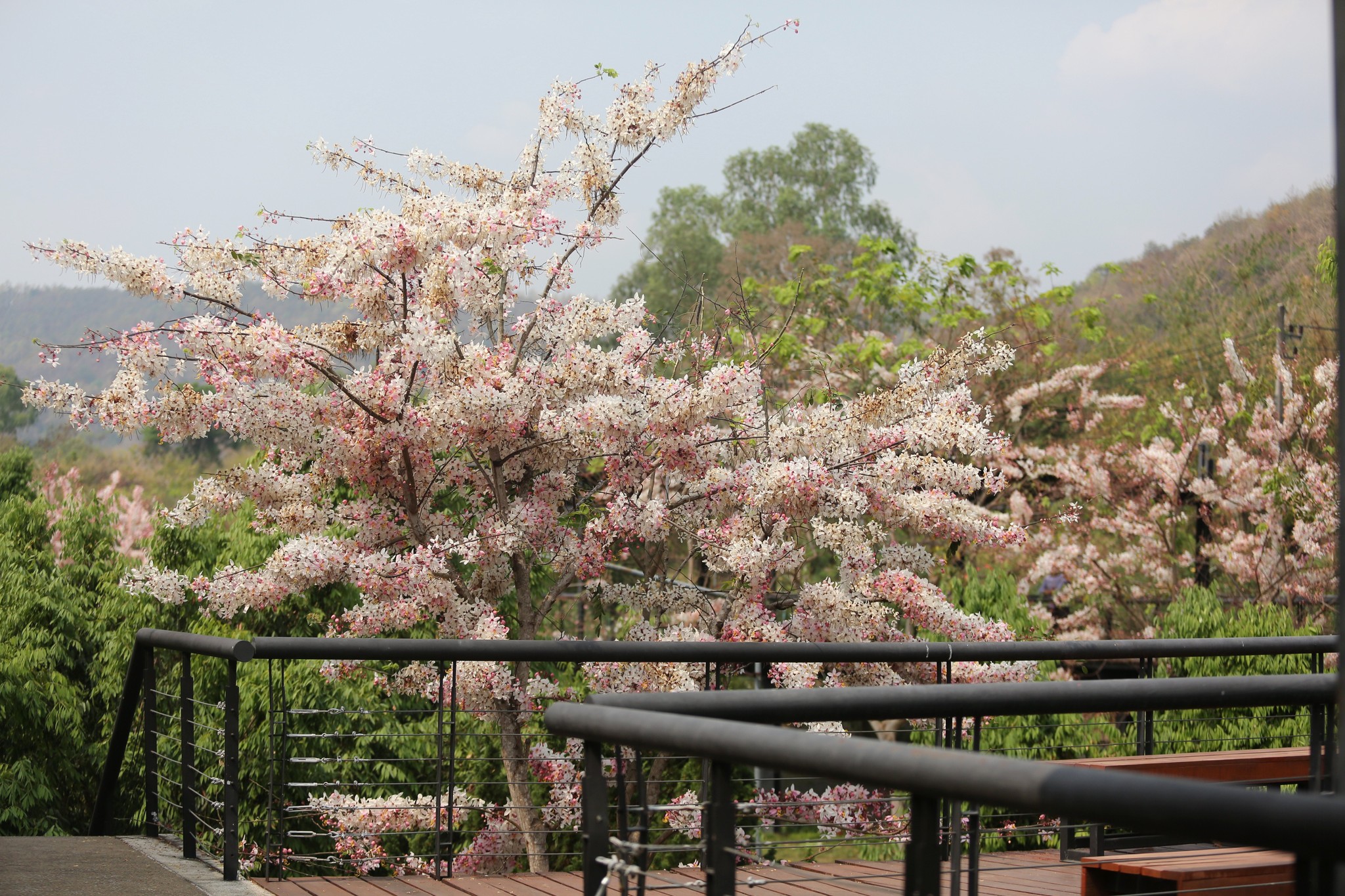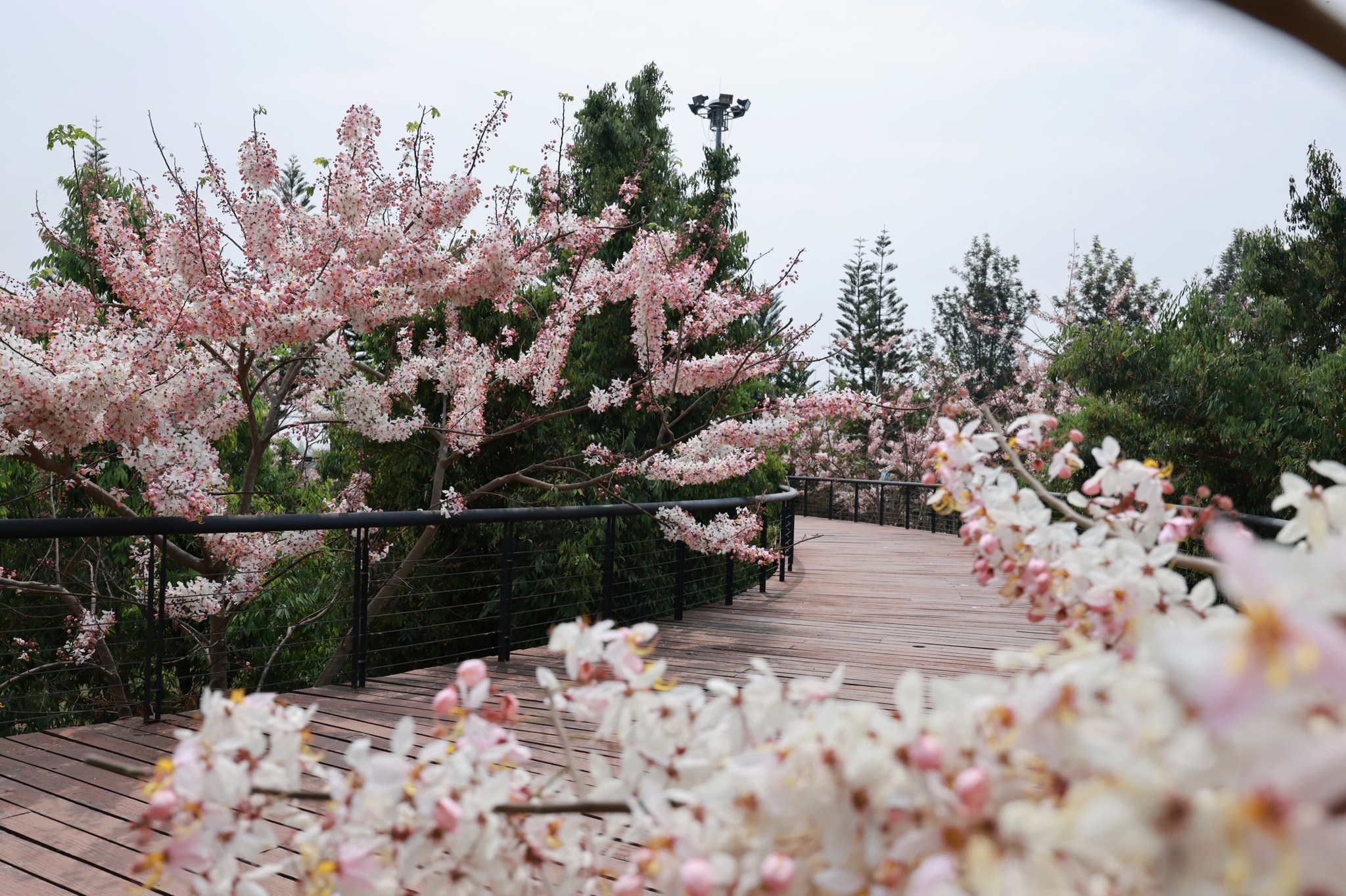 ชวนมาเดินเล่นถ่ายรูปเพลินๆ กับถนนสายสีชมพู-ขาวที่ถูกแต่งแต้มด้วย ดอกกัลปพฤกษ์บานสะพรั่งตลอดเส้นทางยาวกว่า 100 เมตร ตอนนี้บานเต็มที่ 100% สวยละมุนราวกับอยู่ในสวนดอกไม้ต่างประเทศจะเดินชมบนถนนสายดอกไม้หรือขึ้นไปเก็บภาพจากมุมสูงบน Skywalk ก็ได้บรรยากาศโรแมนติกไม่แพ้กัน บอกเลยว่าเป็นช่วงเวลาที่สวยที่สุดของปีและหาดูได้เพียงฤดูกาลนี้เท่านั้น