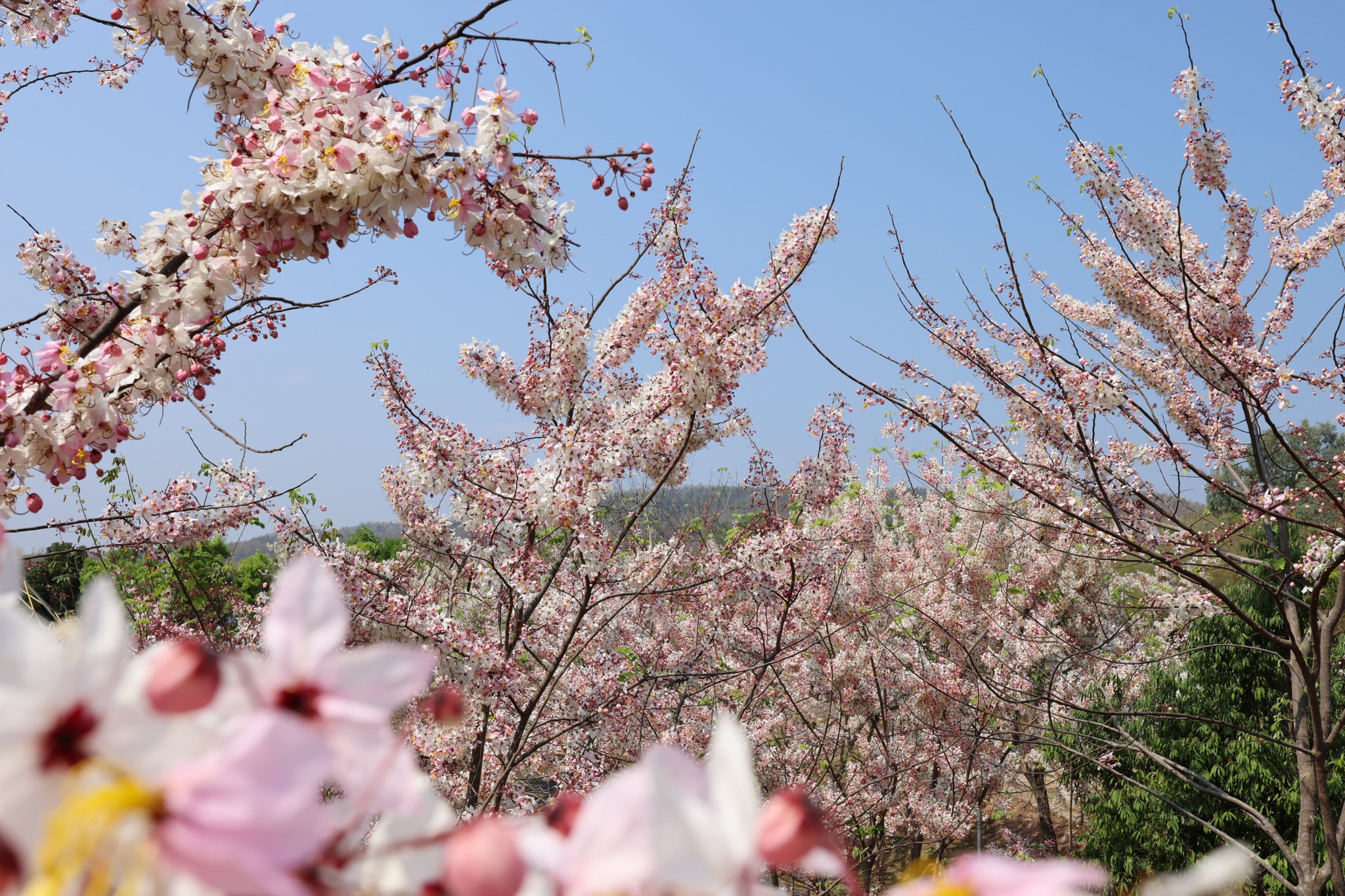 ✿“กัลปพฤกษ์” (ซากุระเมืองไทย) สีชมพู-ขาวละมุน บานสะพรั่งเต็มต้นให้ฟีลเหมือนเดินอยู่ต่างประเทศ โรแมนติกสุดๆ จนกลายเป็นมุมเช็คอินยอดฮิตที่ใครมาก็ต้องหยุดถ่ายภาพ