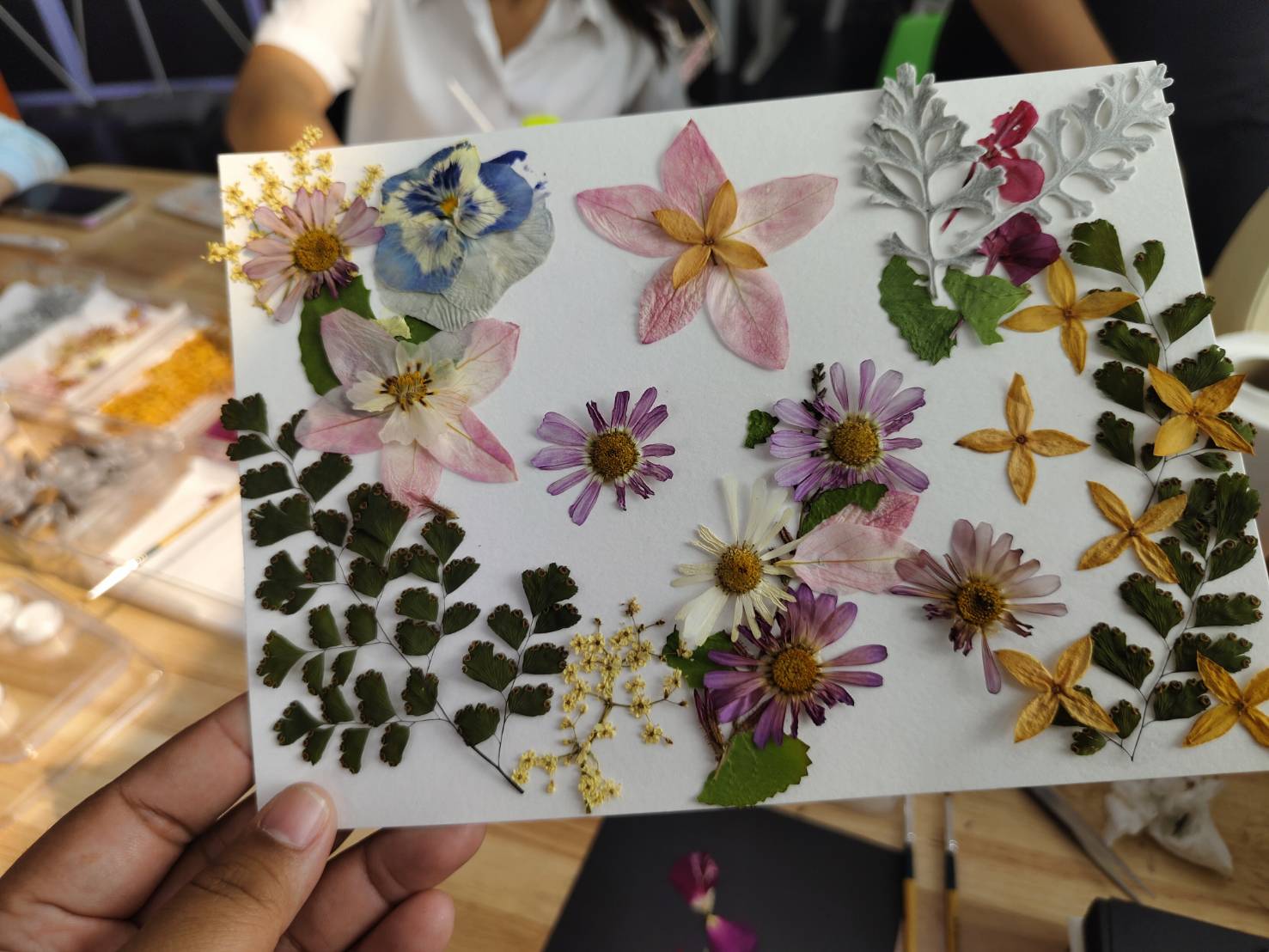 ✿ ในวันเปิดงาน เราชวนทุกคนมาร่วมสนุกกับกิจกรรมสร้างสรรค์ ทั้ง “การถนอมดอกไม้ในน้ำมัน” และการประดิษฐ์ภาพจากดอกไม้แห้ง ที่ไม่เพียงสวยงาม แต่ยังได้เรียนรู้ไปพร้อมกัน
