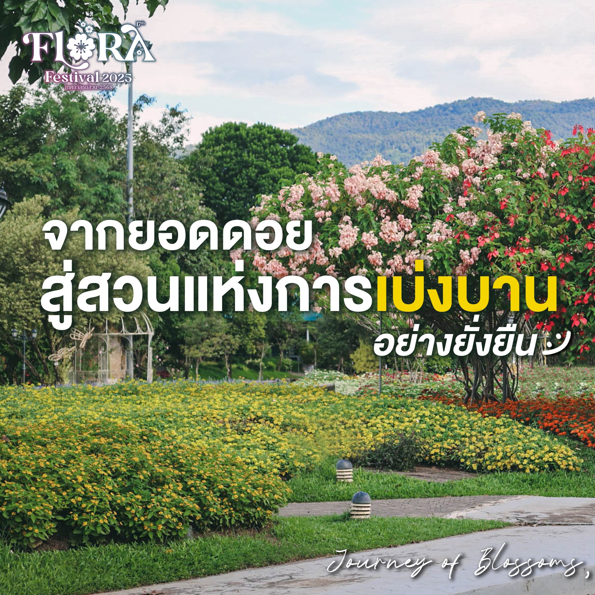 ทุกกลีบดอกคือสัญลักษณ์ของ “ความร่วมมือ” ระหว่างธรรมชาติ ผู้คน และหัวใจที่มุ่งมั่น ร่วมกันสร้าง “ความงามที่ยั่งยืน” และส่งต่อ “ลมหายใจแห่งภูเขา” สู่สวนที่เต็มไปด้วยชีวิตและความหวัง