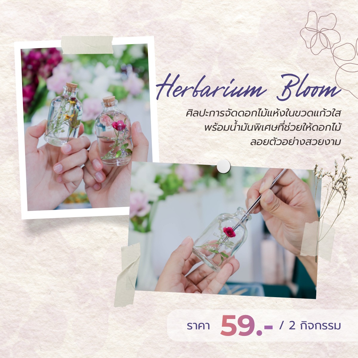 มาเก็บ “ช่วงเวลาที่สวยที่สุดของดอกไม้” ไว้ในผลงานทำมือแสนพิเศษ เวิร์กชอปที่ให้คุณได้ทั้งความเพลิดเพลิน ผ่อนคลาย และได้ของทำเองกลับบ้านแบบคิ้วท์ ๆ ที่สำคัญ ในกิจกรรมเดียว คุณจะได้ถึง 2 งานศิลป์ยอดนิยม! ❀♣︎