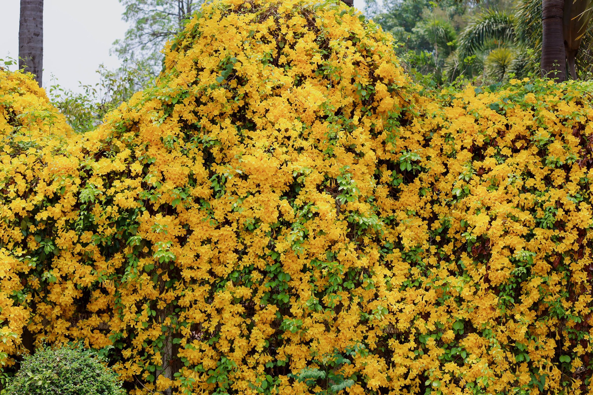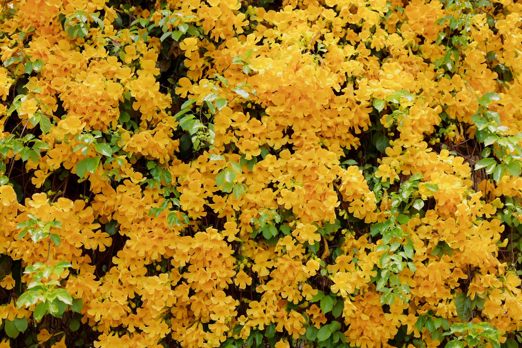 “เหลืองชัชวาลย์” ไม้เลื้อยดอกสีเหลืองทองสดใส โดดเด่นด้วยดอกทรงแตร มีกลิ่นหอมอ่อนๆ มีถิ่นกำเนิดตั้งแต่ทวีปอเมริกากลางและใต้ หมู่เกาะอินดีสตะวันตก ไปจนถึงอาร์เจนตินา